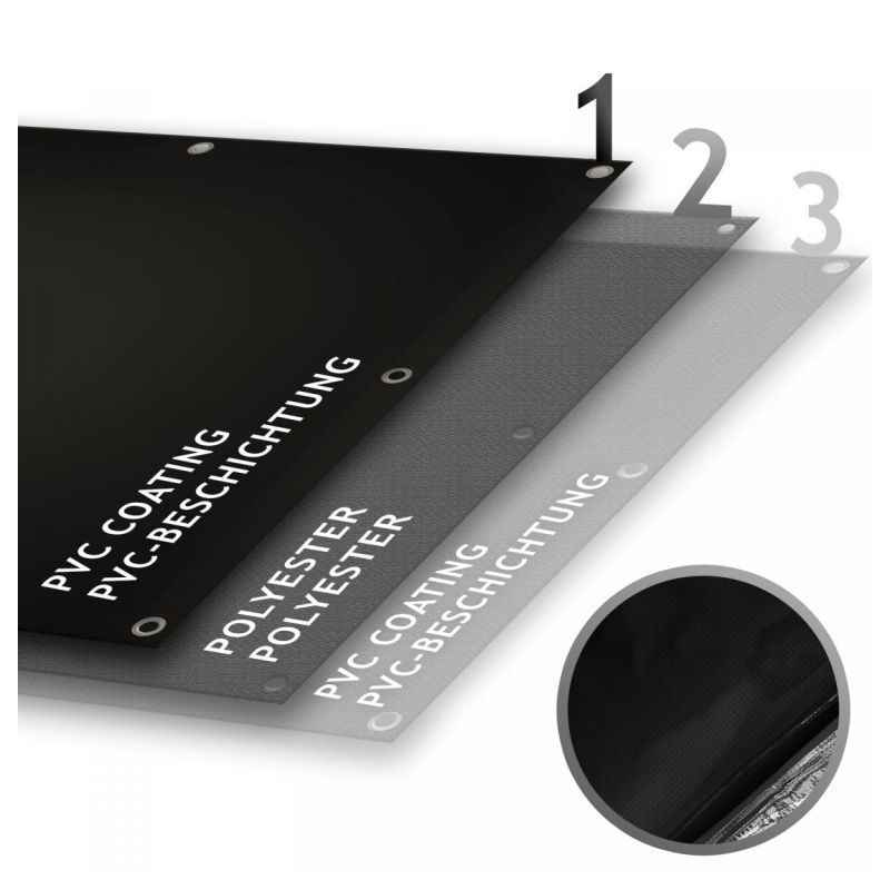 Naše nepromokavá plachta s oky poskytuje ochranný kryt pro váš cenný náklad a různé venkovní předměty, jako jsou bazény a zahradní nábytek. Třívrstvá ochranná plachta je vyrobena z polyesteru potaženého PVC (650 g/m²) odolného proti UV záření. Díky mechanickým vlastnostem je náše plachta pro nákladní vozidla, lodě a obytné automobily mimořádně odolný proti roztržení a opotřebení. Venkovní plachta je vybavena oky ve vzdálenosti 100 cm a nabízí vynikající odolnost proti vodě a povětrnostním vlivům.
