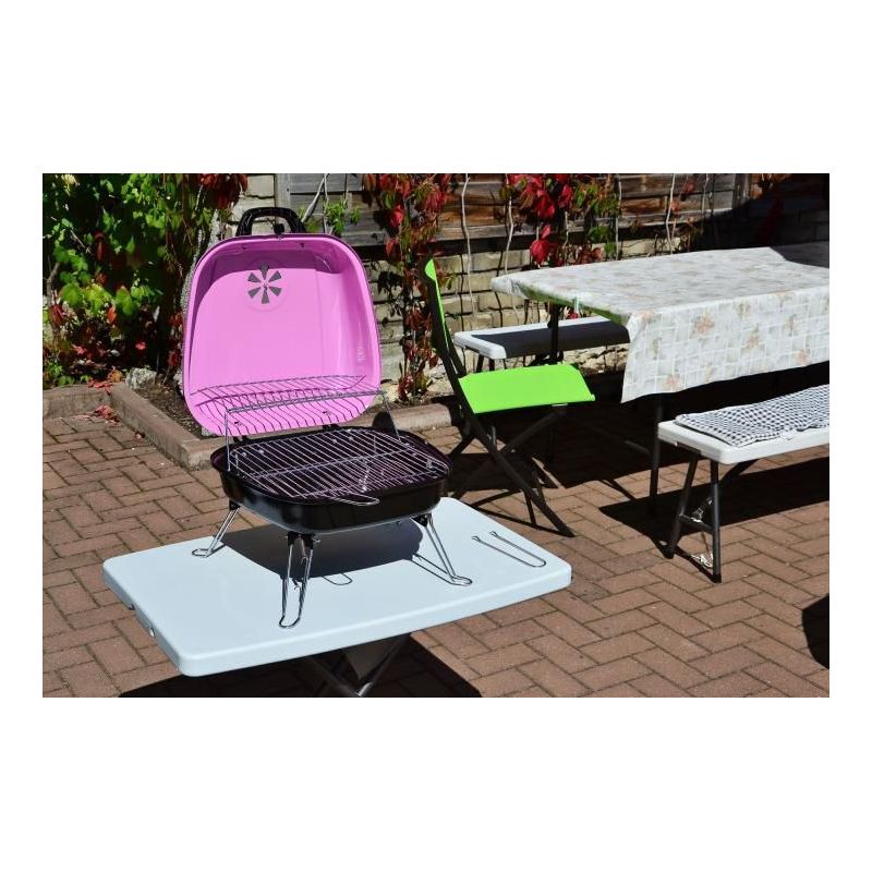 Mini gril není jen praktický, ale okouzluje i svým vzhledem, tento retro design a výrazná barva upoutají každého. Gril má uzamykatelné víko a nastavitelný přívod vzduchu, také obsahuje další rošt.