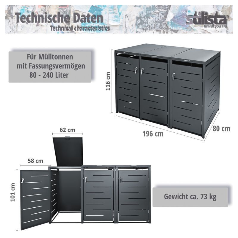 Plynová tlaková pružina ve víku koše usnadňuje jeho otevírání a jemné zavírání. Víko je opatřeno lanem, takže koš i box na odpadky můžete snadno otevřít jednou rukou. Větrací otvory zajišťují dostatečnou cirkulaci vzduchu a zabraňují vzniku nepříjemných pachů v boxu na odpadky.