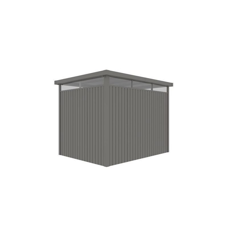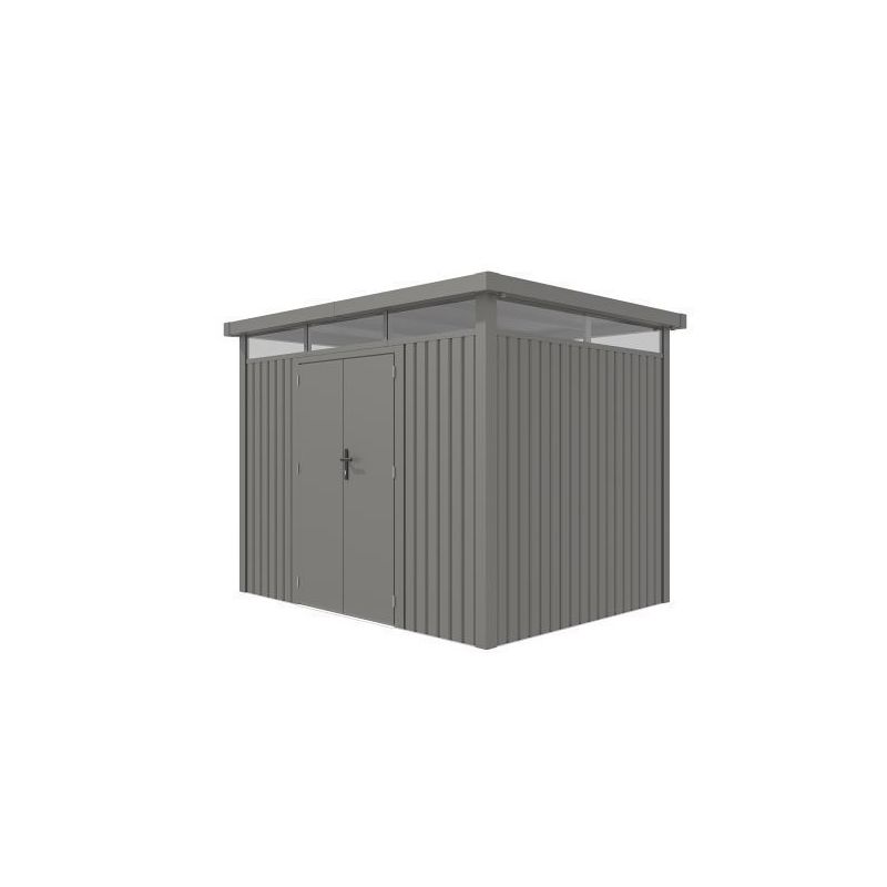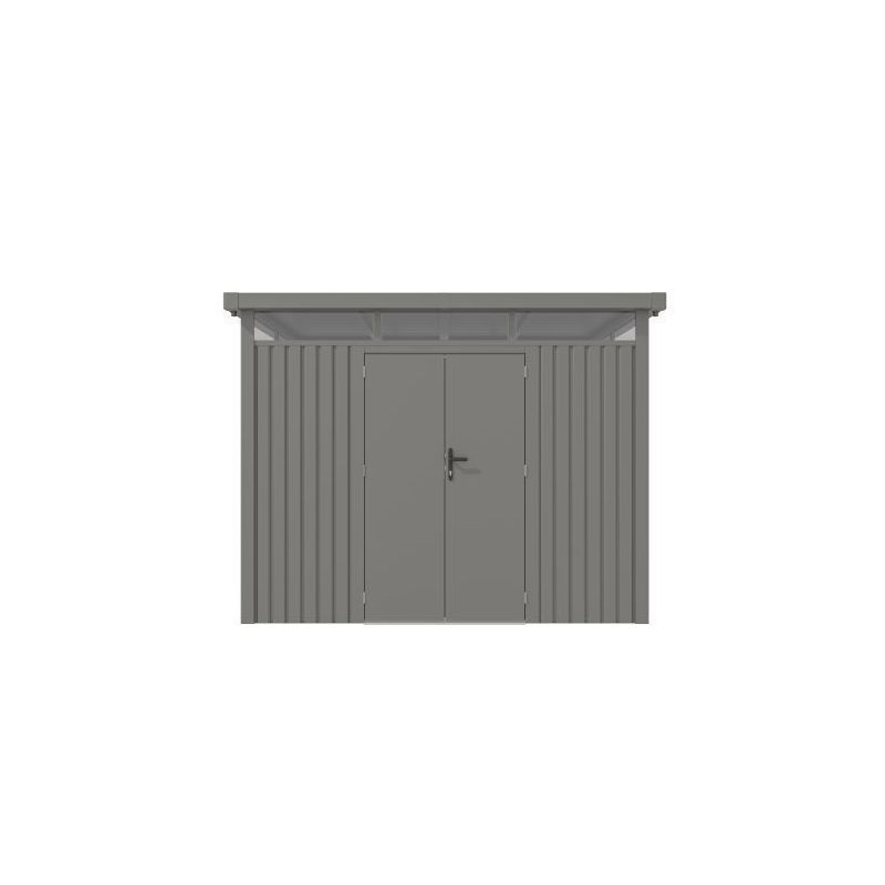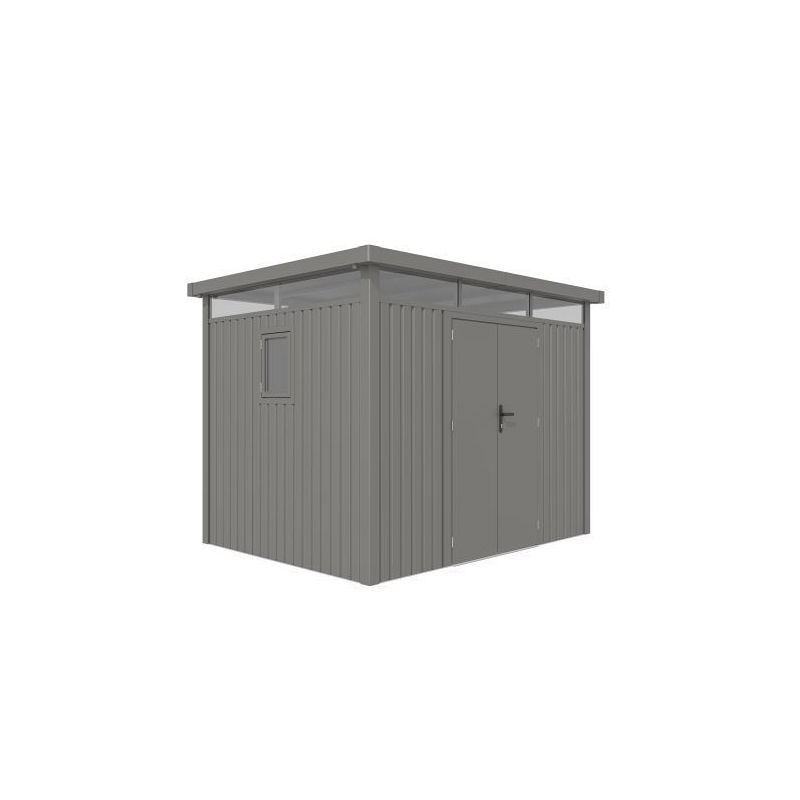 Zahradní domek v moderním designu se hodí do každé zahrady. Domek má dvojité křídlové dveře, které lze uzamknout. Vyroben z kvalitních ocelových plechů tloušťky 0,4 mm a kvalitního rámu zpozinkované oceli tloušťky 0,5 - 1,2 mm. Maximální zatížení střechy sněhem je 60 kg/m2. Jedno otevíratelné okno. Prosvětlené vrchní části panelů. Systém rychlého odvodu deště.
