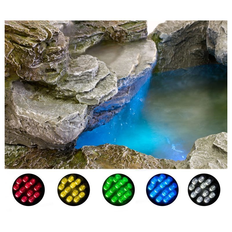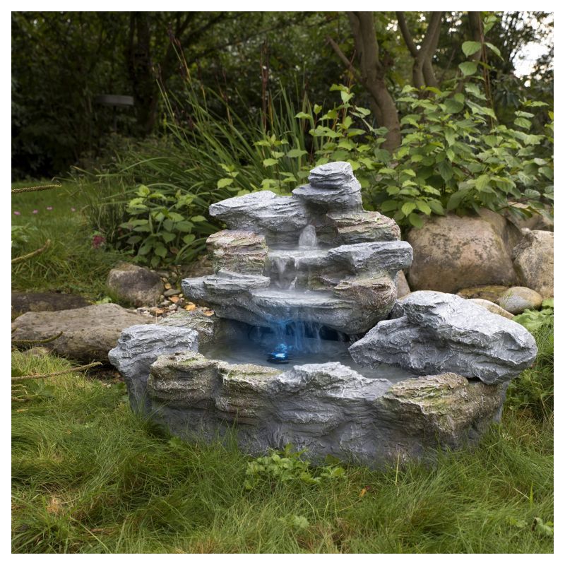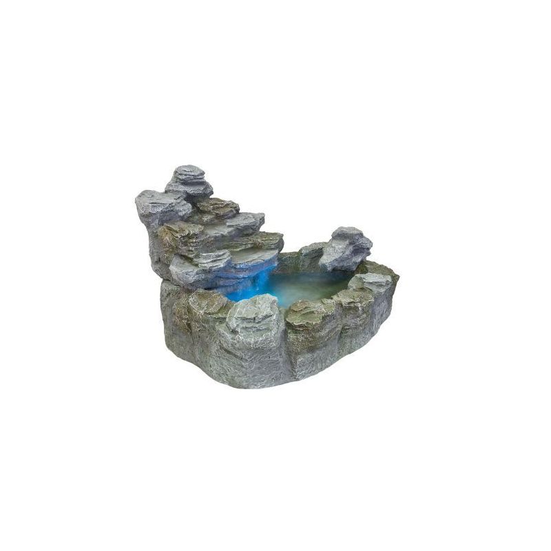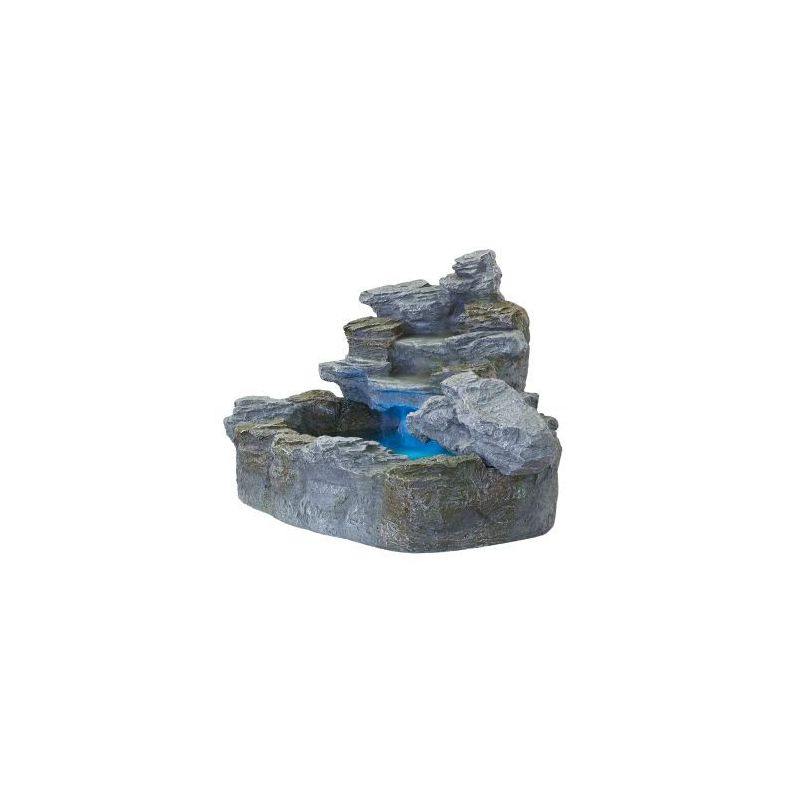 Zvláštností této fontány je přiložený podvodní reflektor se 4 barevnými disky: červeným, modrým, žlutým a zeleným. Plynulý chod nastavitelného čerpadla zajišťuje dobrý průtok. Je vyroben z polyresinu, který je odolný a těžko rozeznatelný od skutečného kamene. Voda vždy cirkuluje pomocí čerpadla. Vezměte prosím na vědomí, že kašna se v zimě musí skladovat mimo mráz.