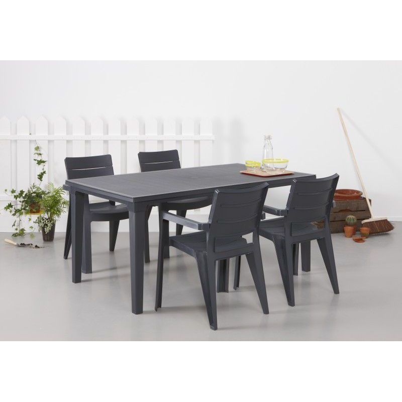 Plastový stůl Futuraje ideální prokaždého, kdo hledá styl a eleganci. Stůlmá prvky imitace dřeva. Je vhodný do většího prostoru pro posezení s rodinou či přáteli. Wellington zaručuje kvalitu a dlouhou životnost. Stůl je odolnýnepřízni počasí i UV záření. Snadná údržba!